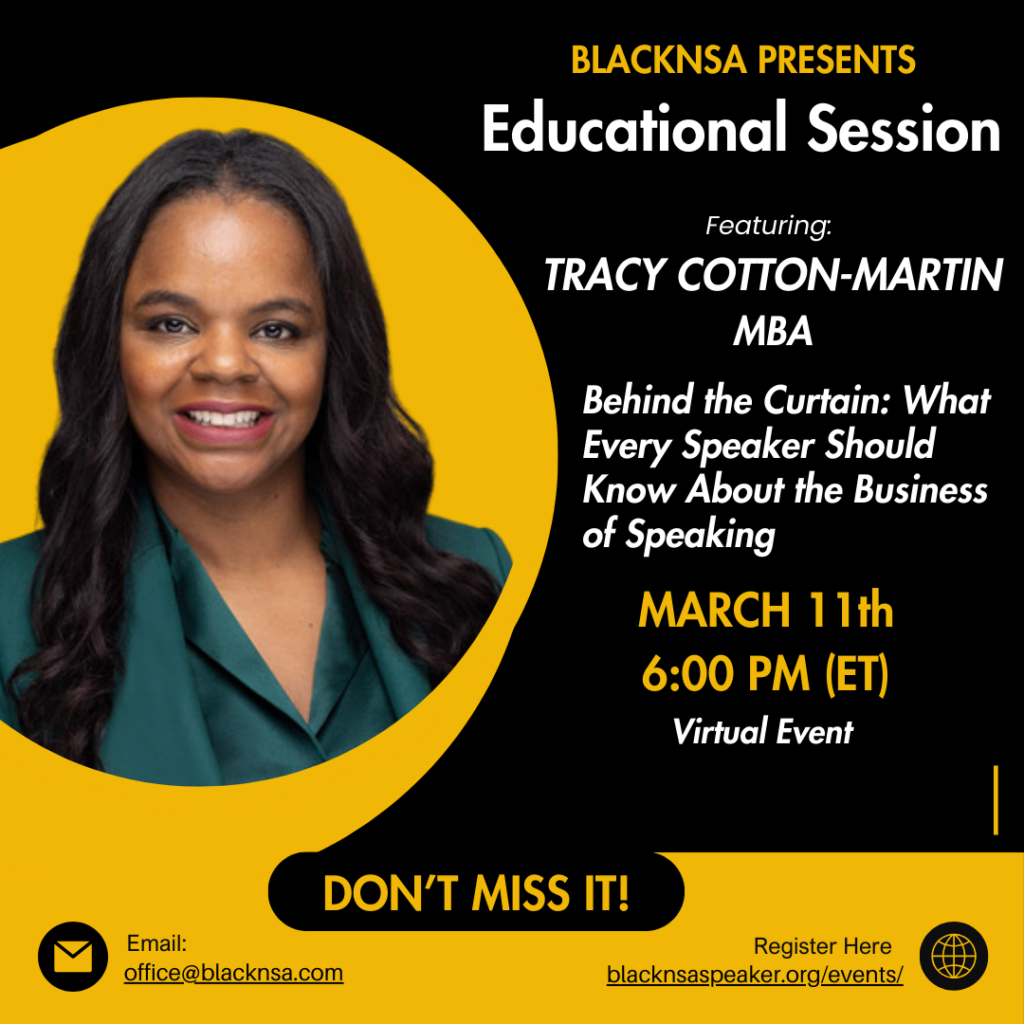 Take your speaking career to the next level with BlackNSA. Whether you’re an established professional or aspiring speaker, we provide the training, resources, and community to build a thriving speaking career.